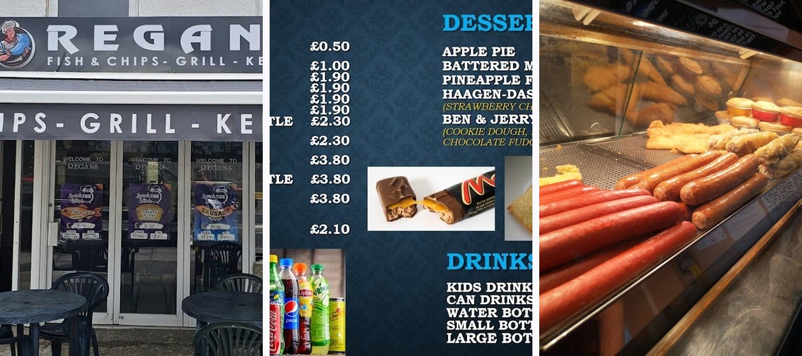 Tonight I went to Regans, and I must say the food we had was 10/10 if I could give 10 stars I would. Firstly the staff here at regans are very friendly; always ask how you are and have time to talk. The food was delicious, including the battered mars bars for dessert! I would highly recommend this shop, and advise you to visit in store you won’t be disappointed at all. Thank you Regans team, see you again soon! You really bring a friendly atmosphere to the local community!