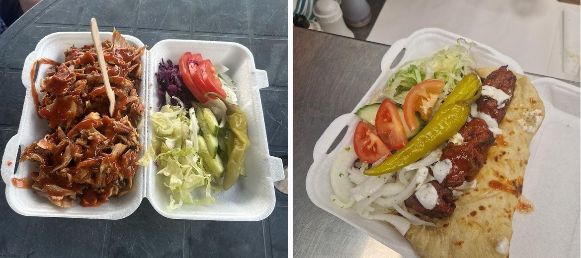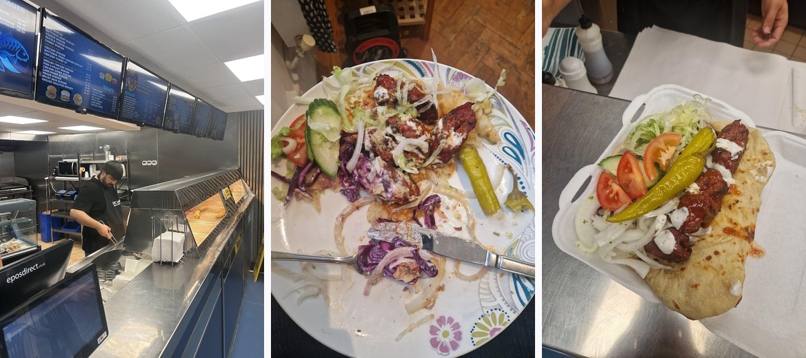 I’ve only known this as a chip shop and since I moved away it has changed hands. We were going to go to The Golden Grill for our kebab only to find it’s temporally closed so someone suggested coming here. A good size portion of meat (chicken and lamb doner), nice salad and chips were freshly cooked, we chose not to have the pitta bread. We sat outside where they have some seating (sturdy plastic garden furniture) which was comfortable., under an awning I’m not one to leave food on my plate but I did leave some of the meat and a couple of chips but only because I was stuffed. Very tasty kebab and nice chips. I will definitely eat here again when we’re next in the area