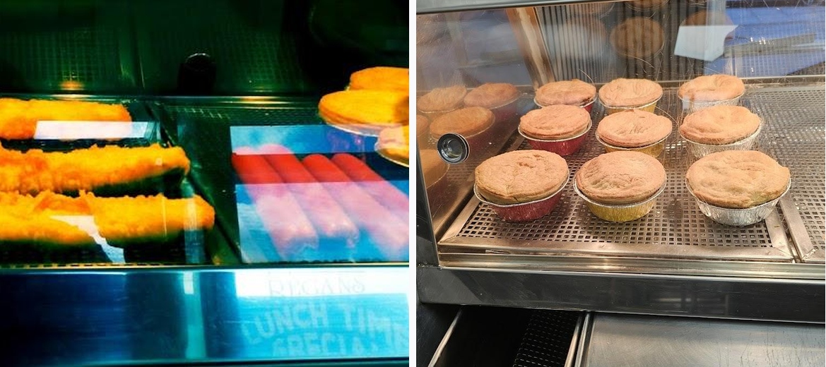 Regans specializes in fish and chips, but also serves a wide range of dishes including kebabs, grilled meats, burgers, pies, and vegetarian options. You can choose from 149 different plates, satisfying various cravings.